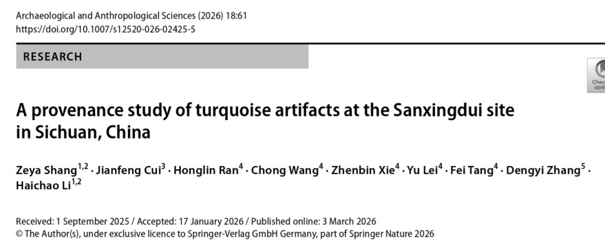 近日,四川大学考古科学中心联合四川省文物考古研究院等多家单位在国际期刊Archaeological and Anthropological Sciences发表题为“A provenance study of turquoise artifacts at the Sanxingdui site in Sichuan, China”的研究成果。该研究结合考古与文献材料,通过微量元素与技术分析,系统探讨了三星堆遗址出土绿松石的来源问题,为三星堆资源互动网络的研究提供了重要资料。四川大学考古文博学院博士研究生尚泽雅为论文第一作者,黎海超教授为论文通讯作者。该文得到国家社科基金重大项目 “三星堆文化与中国文明研究”的资助,是黎海超教授课题组关于三星堆资源、技术、文化互动网络研究的阶段性成果。
