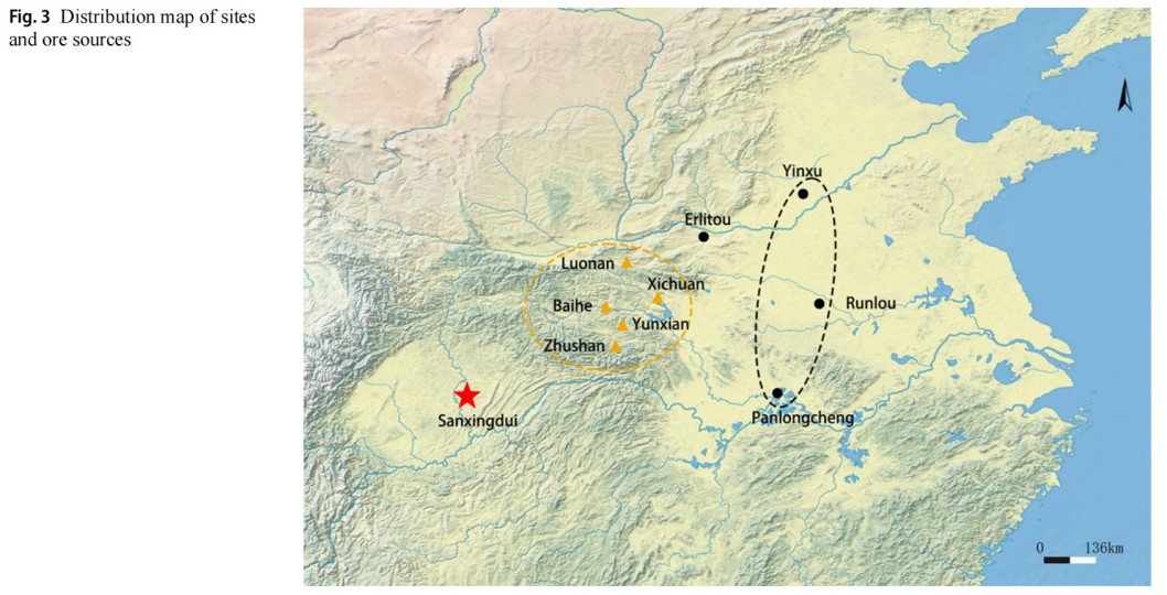 图1 遗址分布及矿源