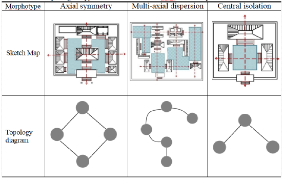 Figure 4. Morphological types and circulation characteristics of temples in the study area